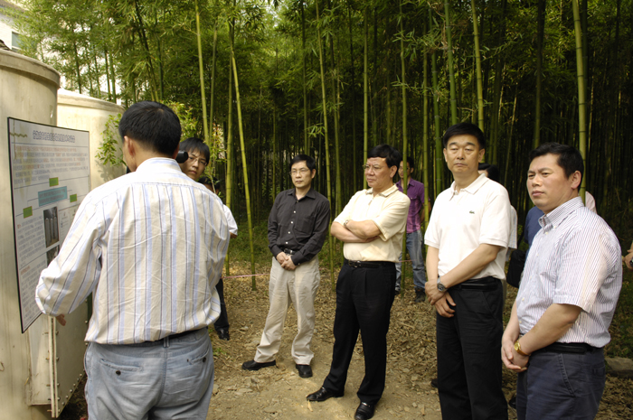 2010年6月7日下午,杭州市政协主席孙忠焕等考察了位于富阳市胥口镇的“分散式农村生活垃圾生态化处理”示范工程。该工程受国家自然科学基金、浙江省科技计划重点项目、杭州市科技计划重点项目等资助,由浙江工商大学沈东升教授主持实施,联合杭州师范大学和浙江大学共同开发,是课题组成员近十年科研攻关取得的成果,获发明专利3项,实用新型专利2项。