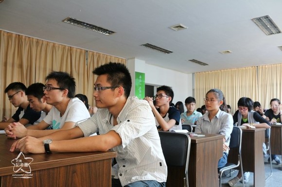 第一位上台展示的是姬云,首先介绍了自己的主要活动,2011年参加了赴龙井村小分队调查当地污染情况;2012年参与了《水蚯蚓与重金属相互作用》的科研活动,目前处于结题期。然后介绍了自己在校的其他表现,担任过各种职务,管理能力不错,校运会上也拿过不错的成绩。