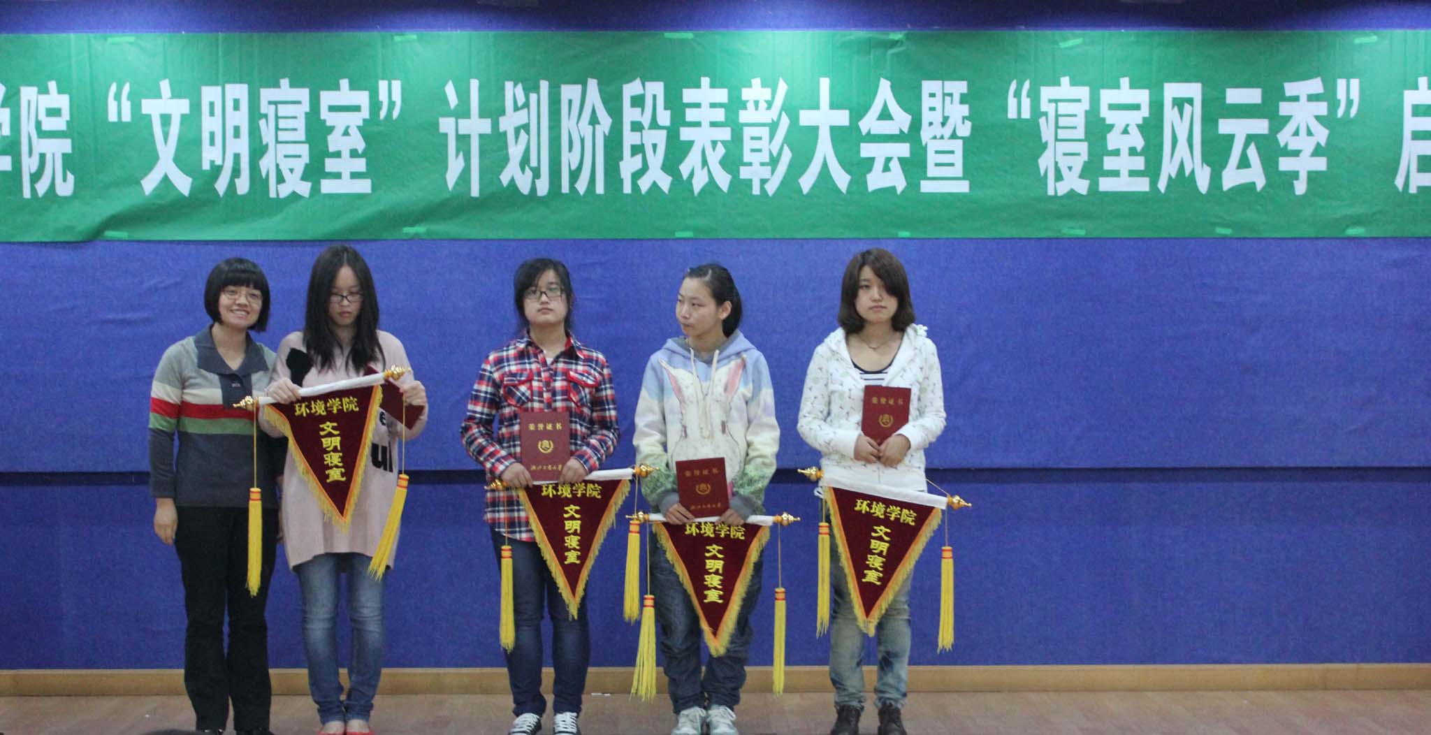 宋志军老师首先总结了我院9月份的“文明寝室”建设情况,对我院大部分寝室的表现做出了肯定,但也存在着一些问题。随后,由方瑾老师宣读了9月份环境学院“文明寝室”的表彰文件,来自我院16号楼235等10个寝室荣获了环境学院“文明寝室”的称号,王连卿老师和方瑾老师还为这些寝室颁发了荣誉证书和流动红旗。紧接着由王连卿老师传达了校党委副书记王兴杰《在加强学生文明寝室工作会议上的讲话》的重要精神。最后,王连卿老师对我院“文明寝室”建设制定的相关文件(《环境科学与工程学院寝室文明管理办法》和《环境科学与工程学院寝室长管理办法》)进行了详细的解读。