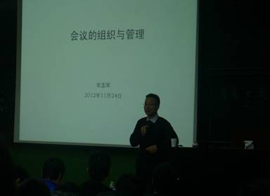 下午13:30,学院学办主任宋志军老师为同学们带来了“会务组织与管理”为主题的课程。确实,平时同学们都是会议的参与者,在听完宋老师的课后,同学们学到了如何去组织一场完美的会议,如何在组织工作中思考的更加完善。