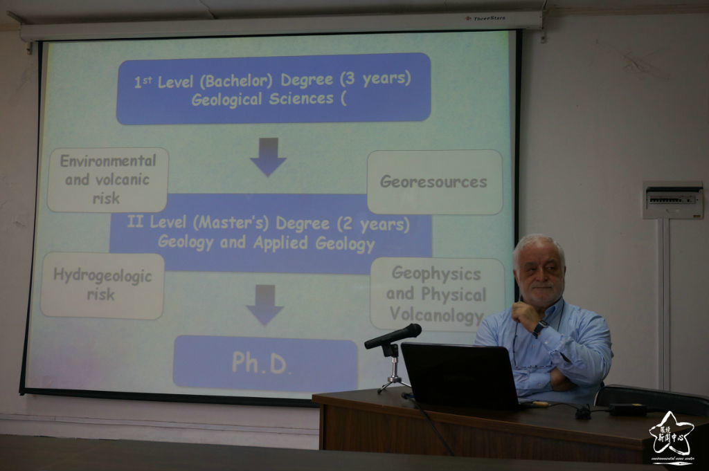 Benedetto De Vivo教授首先在教工路校区8号楼五楼会议室,给本科生、研究生作了《意大利那不勒斯费德里克二世大学地球、环境与资源系的主要科研内容简介》为题的五洲讲坛专题讲座。环境科学与工程学院国际开发中心主任韩竞一博士主持了此次讲座。讲座现场,Benedetto教授简要的介绍了那不勒斯费德里克二世大学地球、环境与资源系的主要科研内容及学校的课程设置,同学们对那不勒斯费德里克二世大学纷纷表现出浓厚的兴趣。