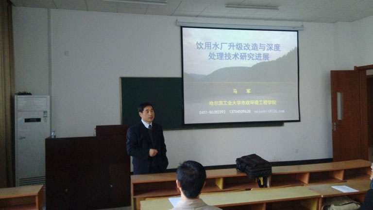 2014年11月20日上午,应我院邀请,教育部“长江学者奖励计划特聘教授”、城市水资源开发利用(北方)国家工程研究中心常务副主任、哈尔滨工业大学市政环境工程学院副院长马军教授在逸夫楼120教室作了题为《城镇水厂提标改造深度处理技术研究》的专题报告。报告会由我院院长孙培德主持,参加报告会的还有市政工程系系主任丛燕青、市政工程系系副主任李春娟以及给排水专业2011级和2012级本科生。