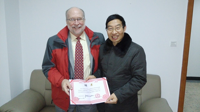讲座结束后,环境学院院长孙培德教授、韩竞一博士与Mark J.Rood教授进行会谈,就双方产学研合作、国际合作、研究生、本科生培养等问题开展了深入交流。 Mark J.Rood教授还受聘为环境学院兼职教授,孙培德院长亲自为其颁发了聘书。