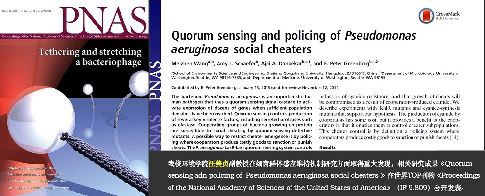 我院汪美贞博士在细菌群体感应维持机制研究方面取得重大发现,相关研究成果《Quorum sensing and policing of Pseudomonas aeruginosa social cheaters 》已正式发表在世界TOP刊物《Proceedings of the National Academy of Sciences of the United States of America》上(IF :9.809)。