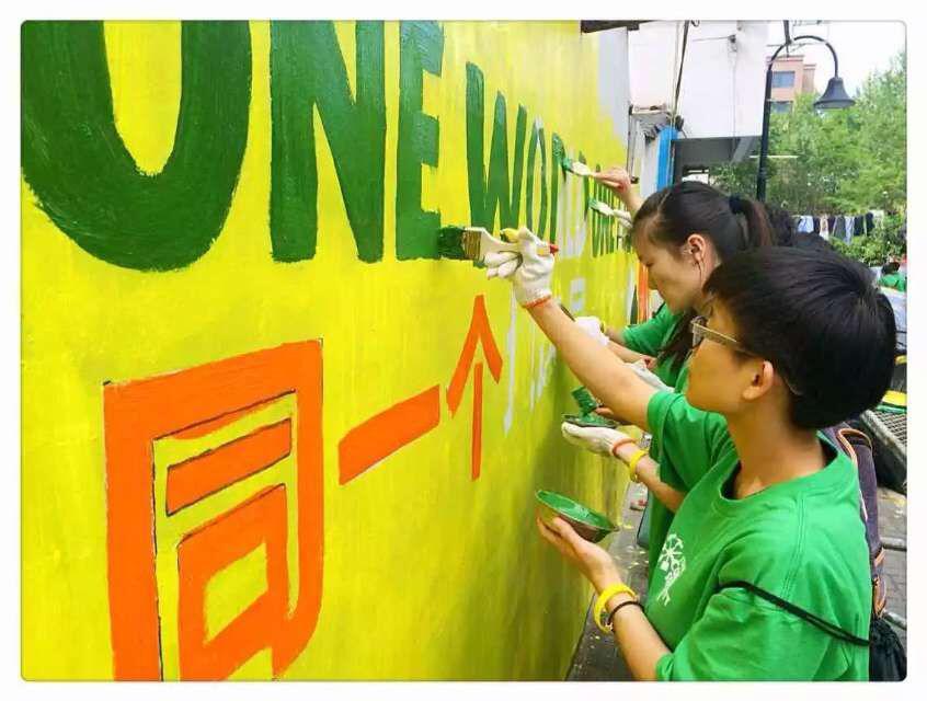 本次社区改造主要包括三个部分:绿植补种、墙体彩绘、清除牛皮癣。志愿者经过一个多小时的车程来到了社区,一下车就收到了星巴克贴心准备的口罩、手套、T恤等,十分关心志愿者。经过简短不失激情的开启仪式后,我们被分成两队参与了创意环保彩绘和绿植补种两部分。