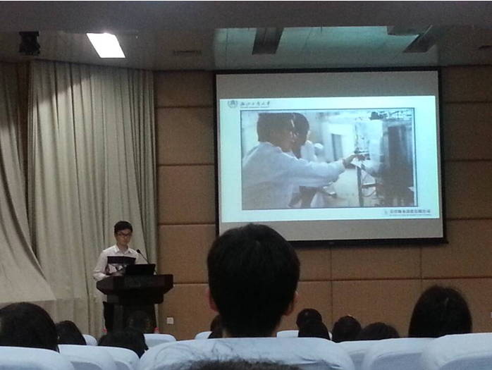 其次,来自环境学院、外语学院、旅游学院等5个学院的6位国创项目负责人作了经验交流。其中我院学生钟振宇、朱纳鑫同学作为学生代表发言。他们从自己项目出发,对于如何选题、组队、寻找指导老师发表了自己的经验和看法。以我院团委创新导师筑梦团和全国百强“小平科技团队”作为依托,从大一新生开始一对一配对专业导师,铸就一个环境梦,同时努力学习专业知识,积极进入实验室自主参加创新实验,形成科技成果。目前,该两名同学均已授权国家专利,钟振宇所带领的项目获得2014年挑战杯省一等奖、全国铜奖,朱纳鑫所带领的项目目前也正在备战2015年的省挑战杯决赛。