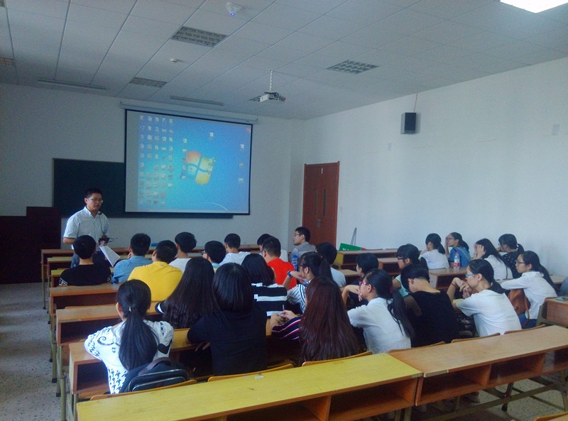 海洋系主任蔡美强从介绍自身经历、专业学术、名人事迹、专业老生优良学风事迹、事迹现状等多方面阐述,让新生深入了解科研技术、专业思考、前景分析、人际交往等大学所需了解的能力。蔡老师分析了全球“海洋热”的形势,从历史渊源剖析,解释了专业开设的必要性和前瞻性。同时,蔡老师以其风趣幽默的语言打动着新生,提出“用20%的时间做80%的事”,鼓励大家积极做事,要求大家培养兴趣爱好,有一个强健的身体面对精彩的人生。