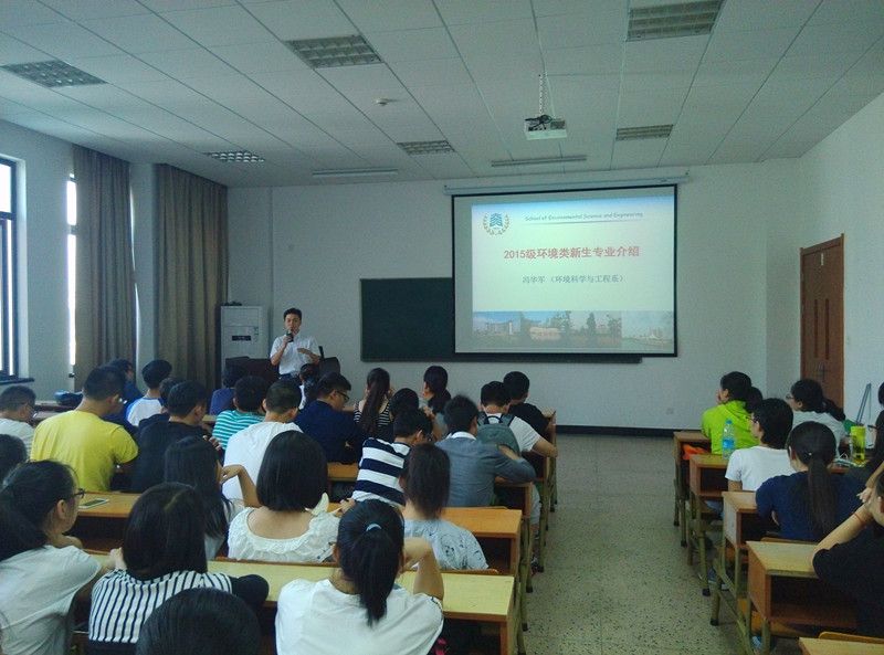 环境系副主任冯华军老师从当前环境现状切入,简单阐述了环境局势及发展趋势,并着重介绍了我院以培养出学术创新人才、工程设计人才,规划管理人才为目标的“EMI分类培养”教学模式。冯老师指出环境专业是“十二五”规划首批新兴特色专业,我院更是凭借优秀的师资力量迅速崛起,一跃成为重点学科,让大家深刻地意识到环境产业蓬勃的发展力。最后,冯老师还对新一届环境专业学生提出期望:学好专业知识,做好环境人。接着,我院“小平科技创新团队”队长梁禹翔学长以自身经历为例,以其“三次冲破迷茫”的励志故事,激励大家刻苦学习,早日摆脱迷茫,找到目标,充实大学生活。环境系资深教授马香娟也送上了新生祝语,让新生深切感觉到环境系的温暖,马老师不仅仅是一位优秀的导师,更是一位慈爱的母亲。在讲话中,马老师特别强调注重自身健康的重要性,借此寄托了她对大家无限的希望,只要坚持不懈,终能成就梦想。
