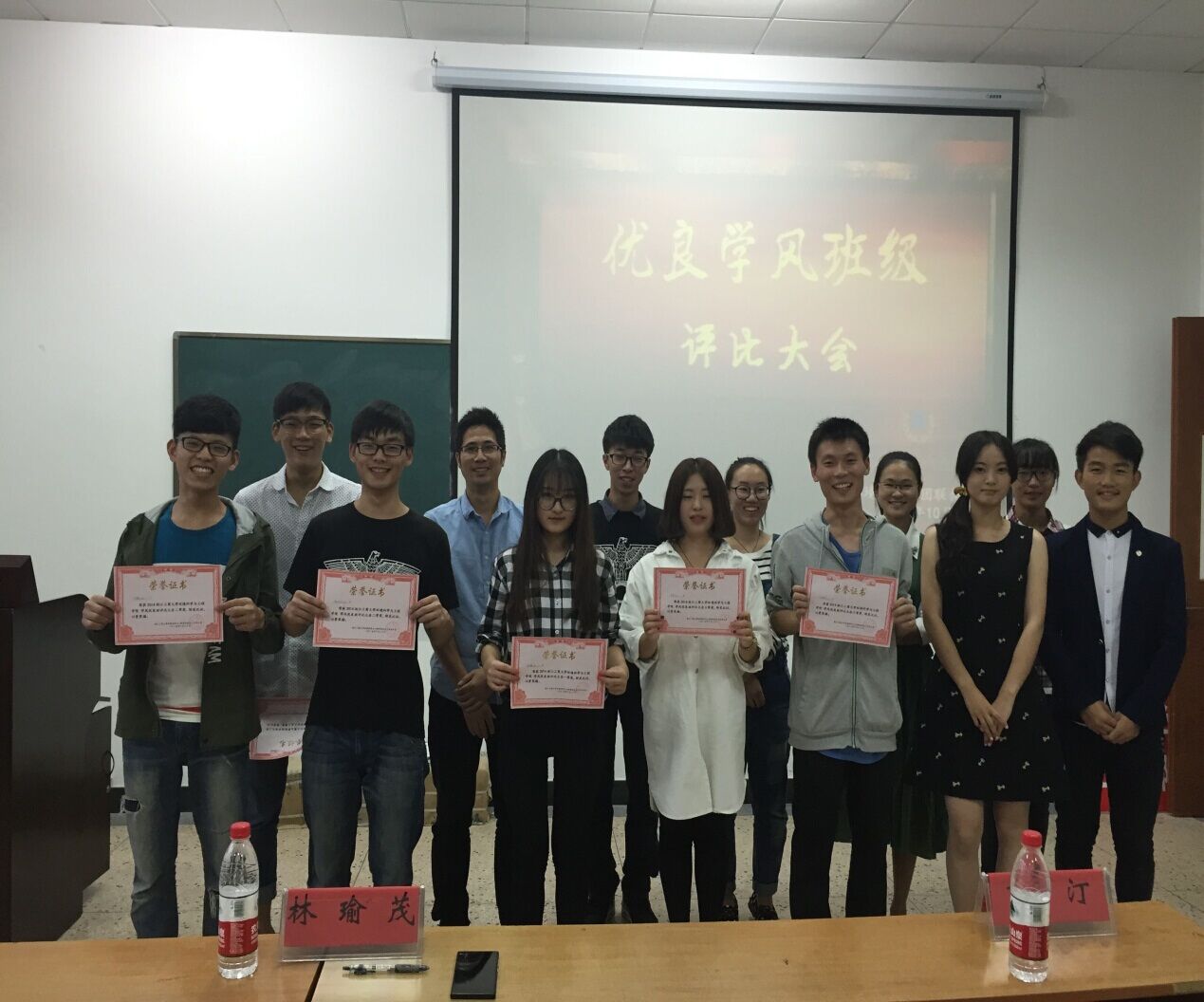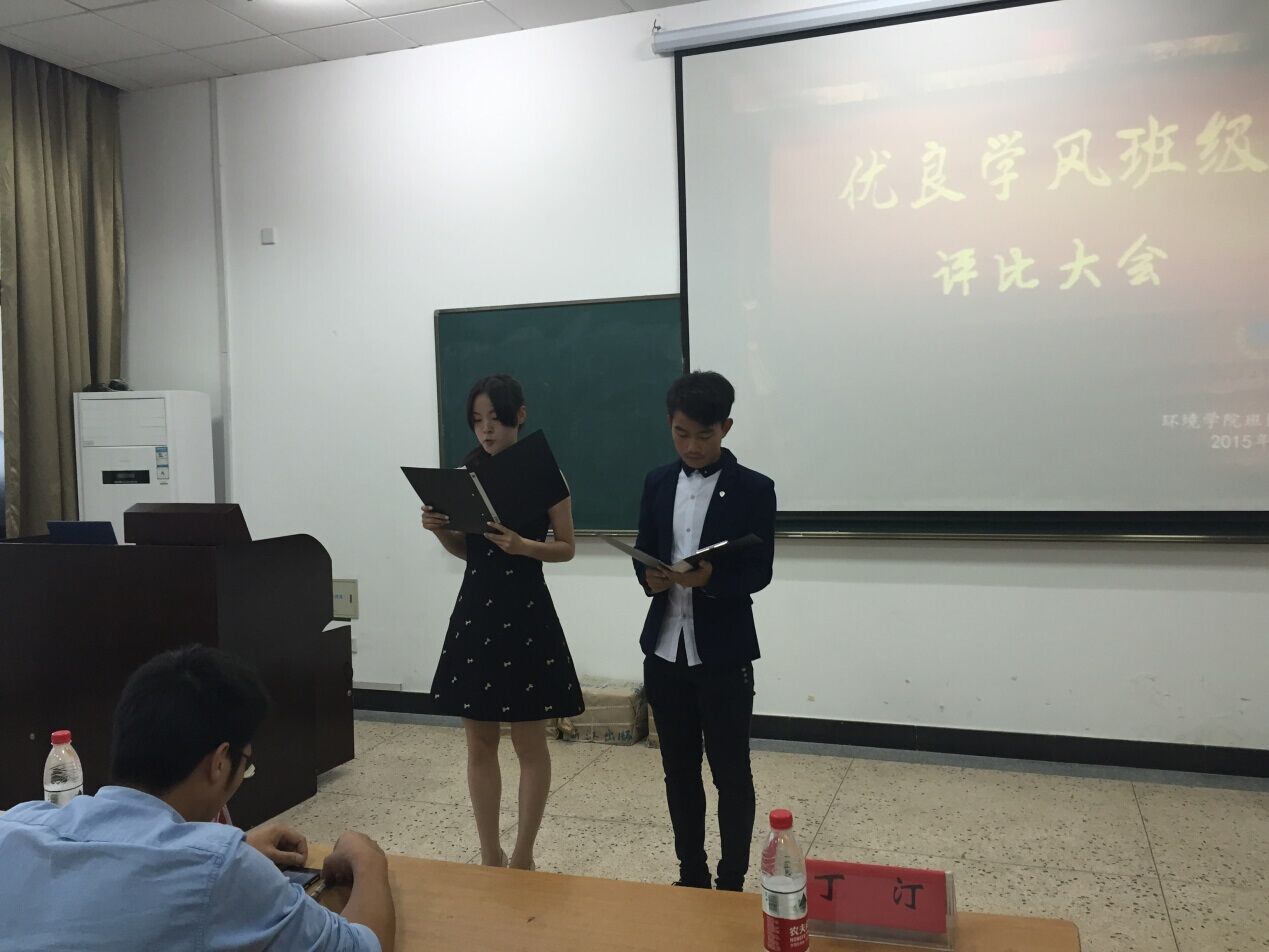 在这次优良学风班评比会中,我们看到了每一个班级不同的精神风貌,以及在班级体中所凝聚的潜力与爆发力。这次评比会主要是以PPT展示与现场讲说表现进行的,参与本次会议的不仅有参赛班级,更有很多前来加油鼓劲的同学,而且我们也请来了环境学院学办主任林瑜茂老师,团委书记丁汀老师以及学生会和班联评委团。在现场,听着各班代表的精彩演讲,到场的同学都回顾了那些与青春一起战斗的日子,收获了自己的小快乐。