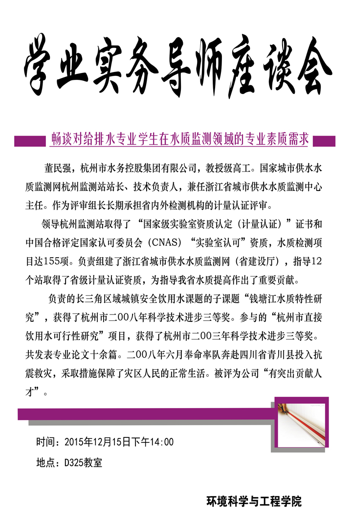 2015年12月15日学业实务导师座谈会预告-杭州市水务控股集团有限公司董民强