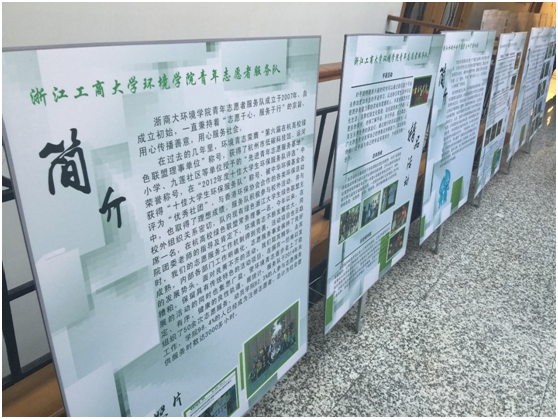 学院青年志愿者服务队这次展示的项目是;我们已具有丰富经验的“环教课堂”志愿活动,旨在让更多的人意识到环保除了积极开发科研项目,也应重视其科普教育,明白从小播撒环保意识种子的重要性。在博览会中途,我院青年志愿者服务队还参与了在杭高校绿色联盟“落叶传情”经验总结交流大会,与浙工大、中医药、浙理工等多所高校进行了经验分享,并展示了我们的活动成果。下午,我院青年志愿者服务队参与了高校学生环保社团经验交流会,会上与在杭高校绿色联盟的理事所在学校代表进行了经验交流,杭州志愿服务总队的总队长孙毅主持了本次大会,并对代表的发言作了总结陈述。