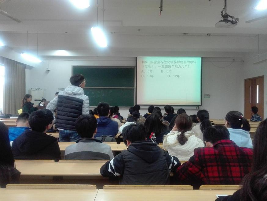 为提高我院2015级新生实验室安全防范意识,防止实验室安全事故的发生,以赛促学,我院于3月22日下午在D229教室举办2016年实验室安全知识竞赛活动。
