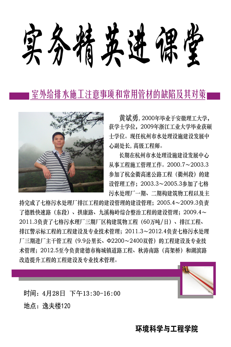 2016年4月27日实务精英进课堂预告—杭州市水处理设施建设发展中心黄斌勇