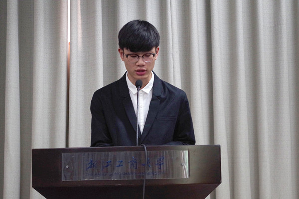 紧接着,是2016级新生周怀阳同学的发言。周怀阳同学满怀着对即将到来的大学生活的无限憧憬,发表了自己的讲话。话语中,我们感受到活力与激情,我们感受到一颗对浙商大、对环境热爱的心。“莫等闲、白了少年头”,相信他一定能创造自己无悔的大学生涯。