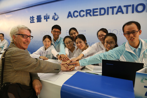 a:我了解这项工作已经很久了,真正开始还是大一这年,恰好G20峰会在杭州召开,当时我觉得这是一个好机会,即可以锻炼自己,还能真正走进这一行业。