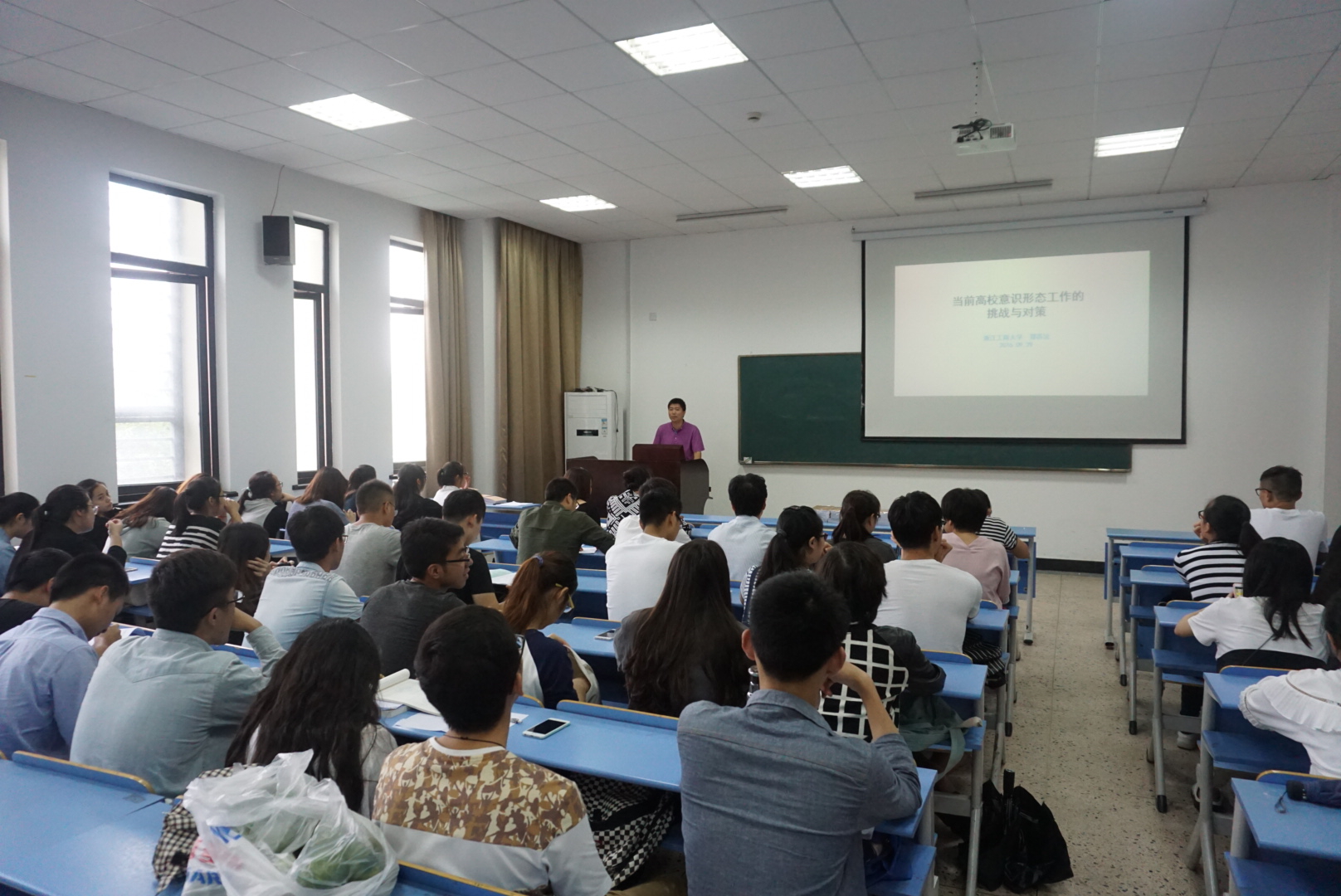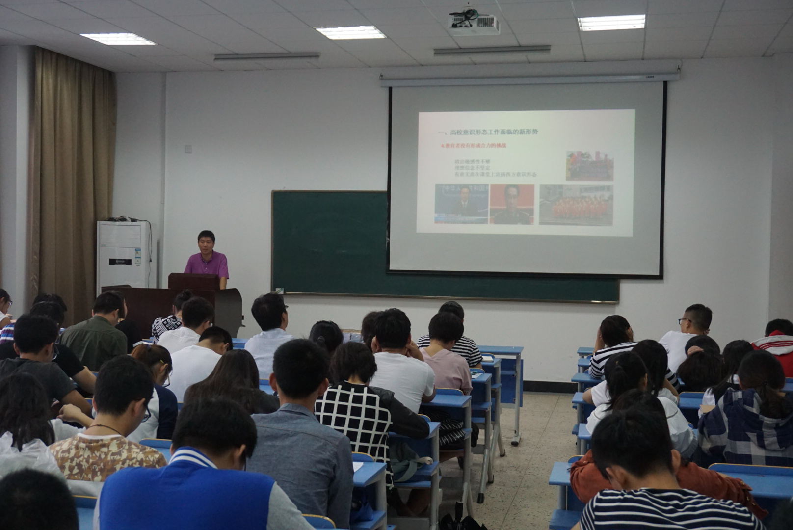 培训会上,院党委书记郑苏法作了《高校意识形态工作面临的挑战与对策》专题辅导。郑书记结合目前高校在外来性挑战、自生性挑战、教育挑战等新形势,对新自由主义、民主社会主义、普世价值、宪政民主及历史虚无主义五大方面的的错误思想作了深入剖析,对各种错误思潮的代表人物、典型事件、危害性进行详细解读,最后对加强全院教师干部思政建设、培养学院意识形态工作主力军、守好学院意识形态工作的主阵地、打赢学院意识形态工作主战场、唱响校园意识形态工作的主旋律等方面提出了要求。