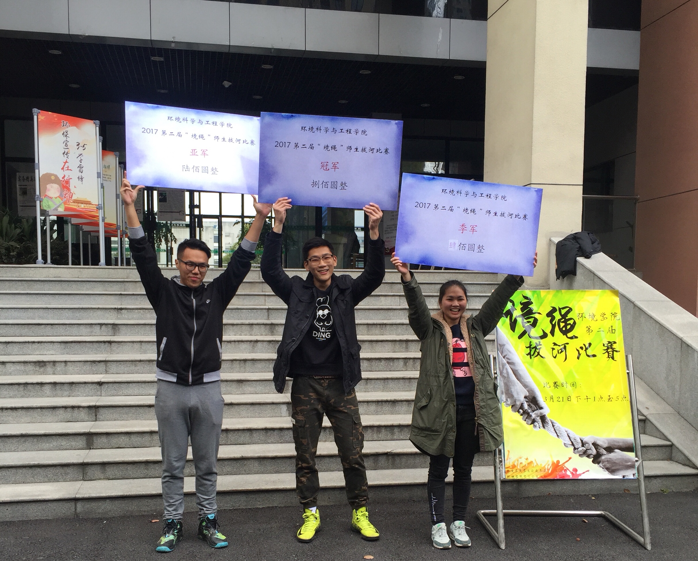 第二名:环境1503班,其中教师队员郑苏法、韩竞一