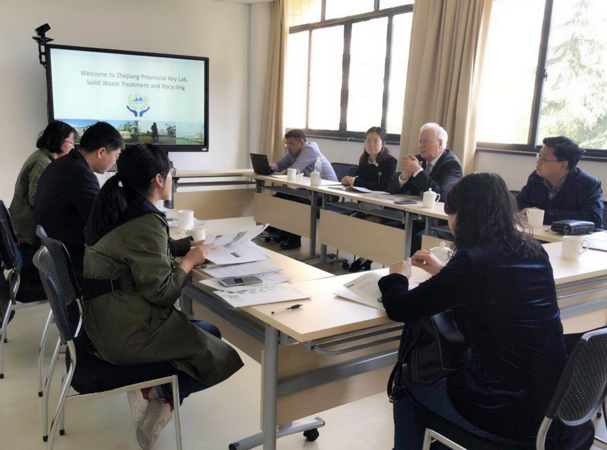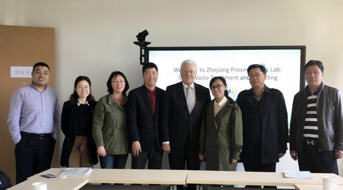 2018年4月8日下午,德国亚琛工业大学水和废物管理研究所的马克斯•多曼教授应邀来环境学院浙江省固体废物处理与资源化重点实验室(以下简称“省重点实验室”)参观访问。首先,多曼教授在教工路校区会议室与环境学院党委书记郑苏法、殷峻副教授、李娜老师等进行了会谈。多曼教授从德国固体废物处理现状及技术、生活垃圾分类面临的问题、土壤修复技术开发等方面与我院教师进行了深入交流。此外,多曼教授还简要介绍了德国亚琛大学的基本情况,实验室建设方面的先进理念和研究生联合培养的政策。随后,郑书记向多曼教授介绍了环境学院的概况及取得的教学科研成果,李娜老师介绍了省重点实验室的基本情况,殷峻副教授介绍了省重点实验室主要研究方向和取得的标志性成果。