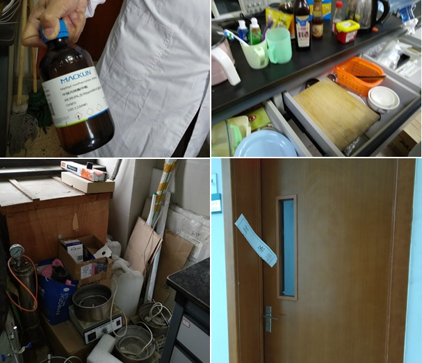 针对本次检查出现的问题,对于情节严重的实验室或研究生学习室,检查小组当场封门处理。