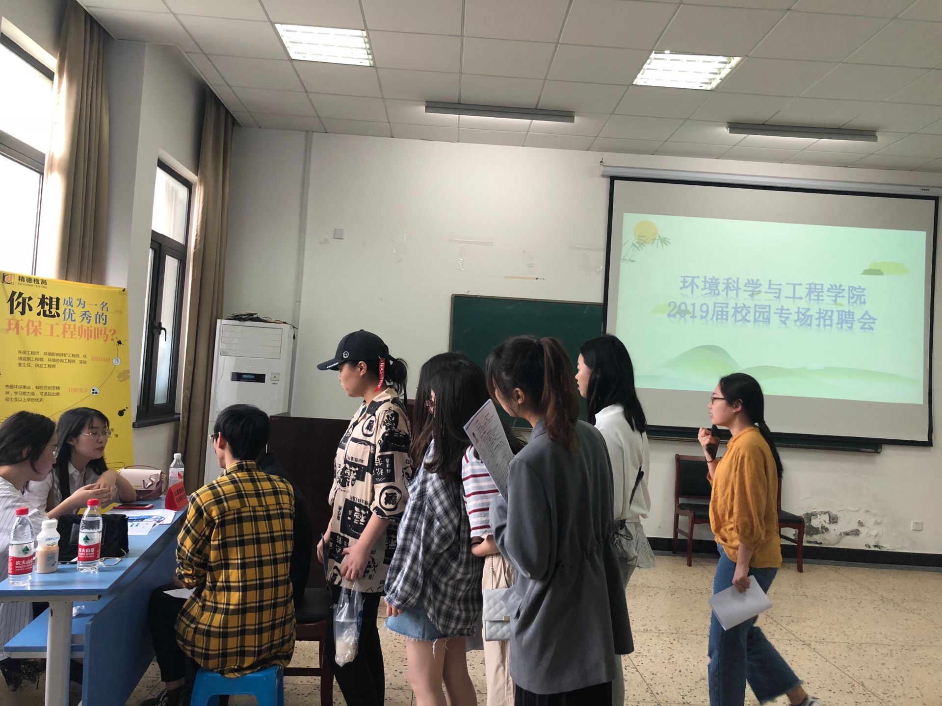 4月19日,由环境学院事务与心理工作中心举办的“环境学院2019届校园专场招聘会”在逸夫楼120教室举行。此次招聘会,我们邀请了浙江博世华环保科技有限公司、浙江瑞阳环保科技公司、爱迪信检测集团、浙江精德检测科技有限公司、杭州行香环保科技有限公司等公司到校参加。
