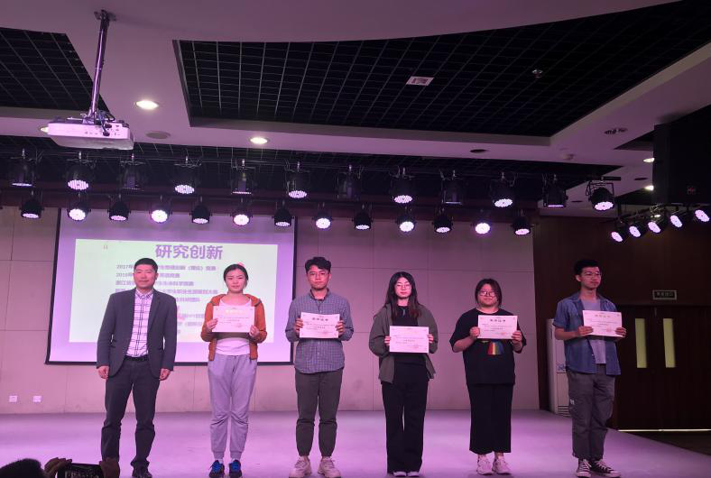 大会共设研究创新类奖、文体活动类奖、社会实践类奖、学风建设类奖等四个颁奖环节,获奖代表徐茜茹、苏林妹、潜浩杰、刘思懿同学上台发言,与同学们分享心路历程与获奖感受,鼓励大家正当青春时要勇于创新、砥砺奋斗,担当好新时代青年的责任。随后,姚远同学为我们带来了古筝演奏《临安遗恨》,王海涛同学带来诗朗诵《忆五四峥嵘,颂青春华章》。精彩的表演为颁奖活动增添了不少色彩,慷慨激昂的朗诵让现场爆发出了热烈的掌声。伴随着热烈的掌声,所有奖项颁发完毕,此次表彰大会圆满落幕!