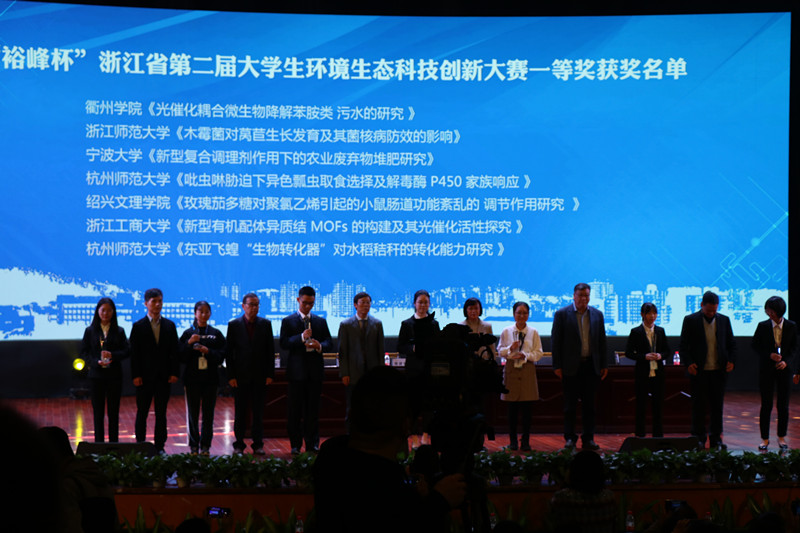据悉,本次大赛以“创新生态环保理念,促进生态文明建设”为主题,由浙江省教育厅、浙江省大学生科技竞赛委员会、浙江省土壤肥料学会、浙江省生态学会主办,浙江农林大学承办。大赛从选题、组队、选拔、网评到决赛历时近14个月,共吸引了来自全省43所高校的553支队伍参加。大赛评选出获奖作品194个,其中 28个作品(团队)获得一等奖,55个作品(团队)获得二等奖,111个作品(团队)获得三等奖。