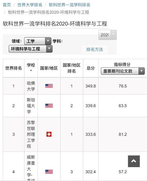 环境科学与工程学科入围2020软科世界一流学科排名行列