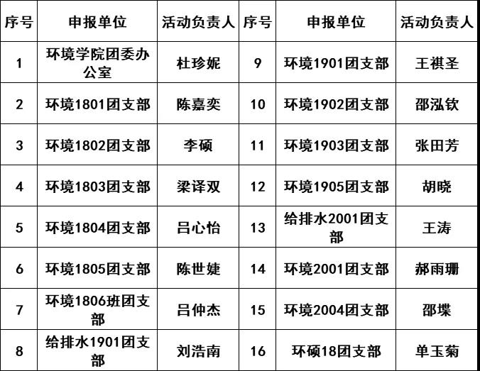 预祝以上各团支部的团日活动项目能够顺利开展,迎接11月下旬至12月上旬的成果总结阶段!