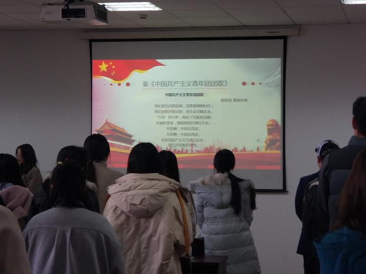 最后,全体参会人员歌唱《中国共产主义青年团团歌》。