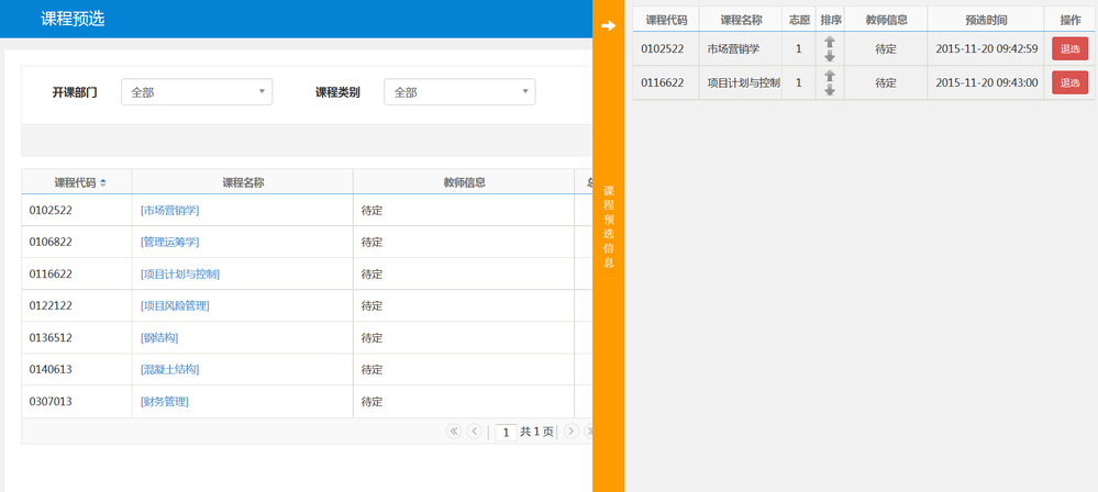 第四步:预选课程查看。点击图3最右边的橙色条,系统出现图4,查看已预选的课程。