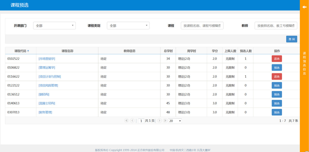 4.选课操作说明: