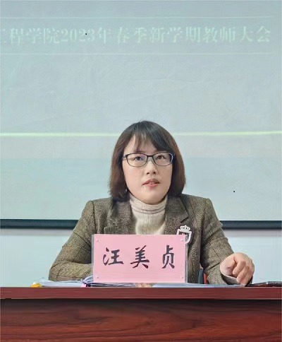 会上,汪美贞首先介绍了新入职的教职工,并对全体教职工表示感谢。她指出,学院第五轮绩效聘岗能够又好又快完成离不开每位教职工的理解和支持,这也为学院新年工作开了好头。紧接着,她对本个任期内学院的各项指标任务进行了解读和部署,强调在学校超常规发展阶段,学院要牢牢把握学校大力振兴理工科的机遇,把一级学科博士点申报作为年度工作重点,全力推进有组织的教学、有组织的科研、有组织的人才培养和有组织的社会服务。她向全院教职工发出号召,要始终保持昂扬向上的奋斗姿态,精诚合作、团结奋进,努力推动学院高质量发展。