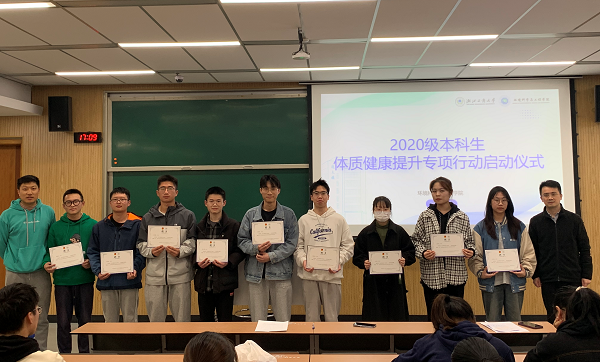 近日,为做好迎接浙江省高校学生体质健康状况抽测准备,切实提升我院学生体质健康水平,学院正式启动“我运动·我快乐”体质健康提升专项行动。学院党委书记狄瑞波、体工部教师夏秋冬、学院全体辅导员以及2020级本科生出席启动仪式。启动仪式由学院党委副书记石周燕主持。