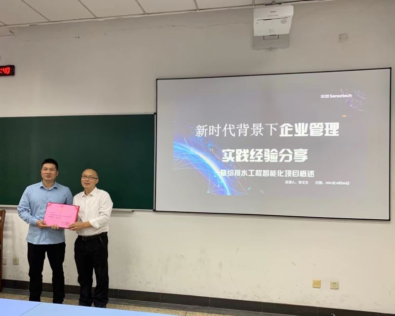 2024年10月25日下午,杭州实想科技有限公司总经理钟文生专家受邀于C125教室为环境学院学生作了主题为“新时代背景下企业管理实践经验分享——暨给排水工程智能化项目概述”的精彩讲座。讲座期间,市政工程系主任李军老师代表学院为钟文生专家颁发了实业实务导师聘书。
