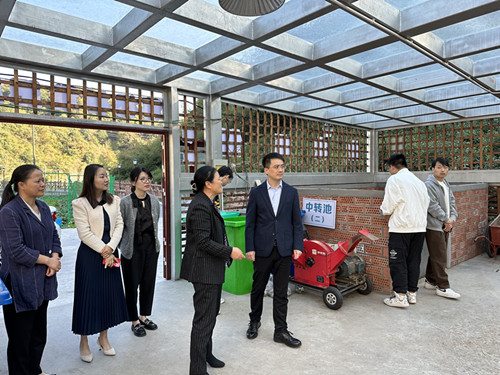 在王坛镇工作人员带领下,狄瑞波一行参观了王坛镇党群服务中心和蒋相村堆肥房。王坛镇地处绍兴市南部偏东南,坐落于会稽山中心,自然环境优美,生态优势突出,2022年入选“美丽浙江十大样板地”。王坛镇注重绿色低碳发展,蒋相村的“阳光垃圾堆肥房”就地实现了农村生活垃圾减量化、资源化处理,生态效益显著,曾被中央电视台等新闻媒体报道,蒋相村也被评为全省首批低(零)碳试点村。