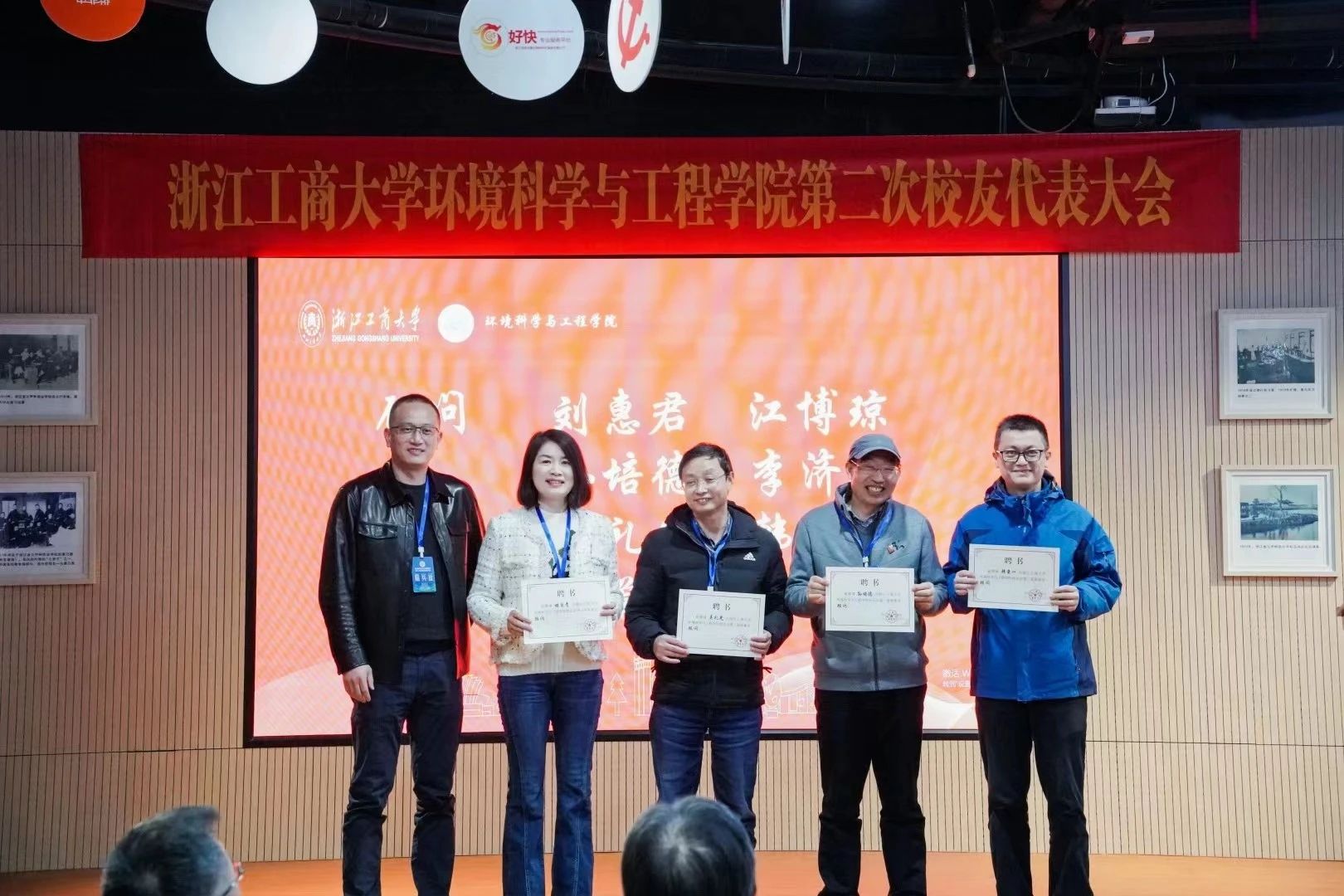 大会审议并通过了《浙江工商大学环境科学与工程学院校友会章程(草案)》修订稿,表决通过了环境科学与工程学院校友会第二届理事会成员名单,共选举产生会长1人、副会长6人,秘书长2人、副秘书长4人,理事27人。提名名誉会长1人、顾问7人、咨询委员会委员9人。环境011班、杭州碟滤膜技术有限公司总经理王立江任会长。