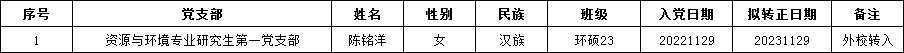 经征求党支部意见,拟对预备党员陈铭洋同志按期转正,现予以公示。