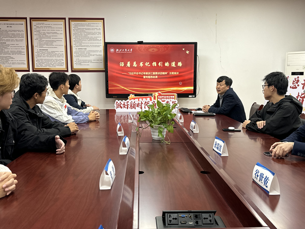 11月30日下午,校党委副书记袁金祥围绕“沿着总书记指引的道路”主题,在环境学院开展“习近平总书记考察浙江重要讲话精神”主题宣讲暨专题思政课。学院党委书记狄瑞波、学办主管朱嘉琳、辅导员赵克维、孙雨以及学生骨干30余人共同参加。