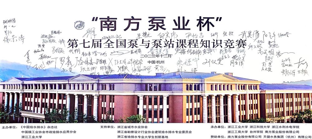 2023年12月2日—3日,“南方泵业杯“第七届全国泵与泵站知识竞赛在南方泵业股份有限公司举行。本次竞赛由《中国给水排水》杂志社、中国膜工业协会市政给排水应用分会、浙江工业大学主办,浙江工业大学、南方泵业股份有限公司、浙江科技学院、浙江工商大学、浙江水利水电学院、台州学院承办。