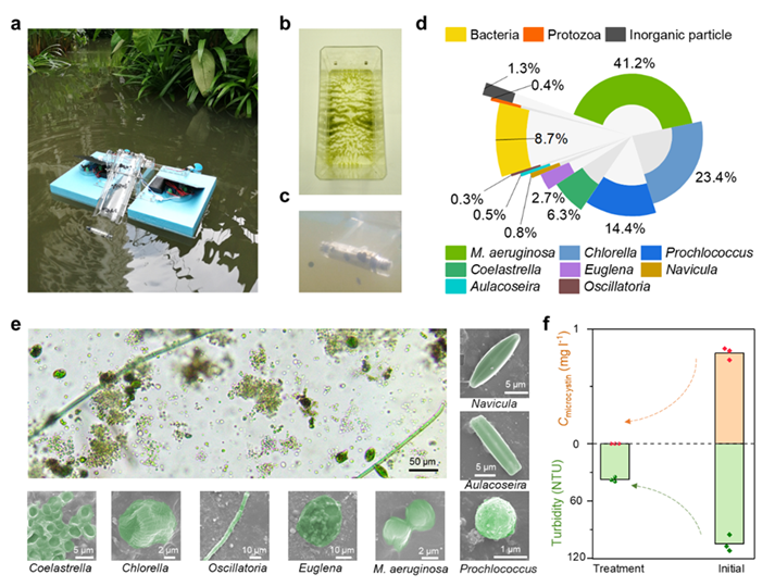 图2. 户外自然水域中SMAGs可持续的微藻捕获