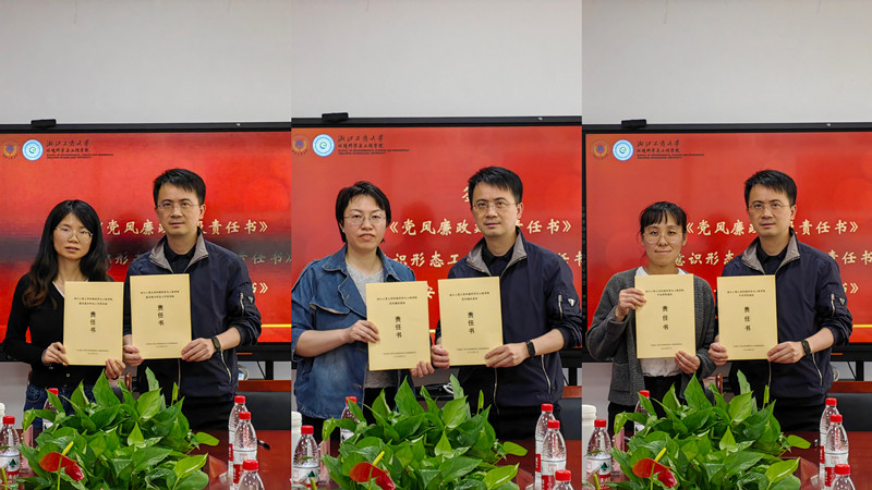 会上,狄瑞波代表学院与各系室主任、党支部书记签订了党风廉政建设责任书、意识形态工作责任制责任书,与各办公室主任签订了平安学院建设责任书。