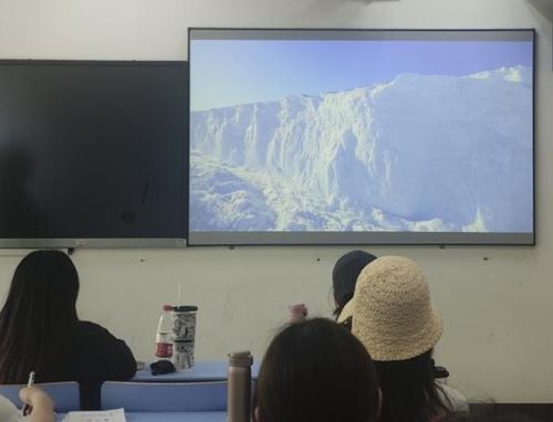此外,赵老师介绍了南极考察站创建至今的艰辛、遇到的风险及国家使命。感叹如今的科考船、考察站的先进技术,并展示课南极科考前辈们的风采!赵老师向我们提出,南极考察站聚焦气候变化对生态系统的影响,服务国家重大战略需求。课程的最后,两段VCR带领同学们领略了美丽的南极风光和科考作业过程。