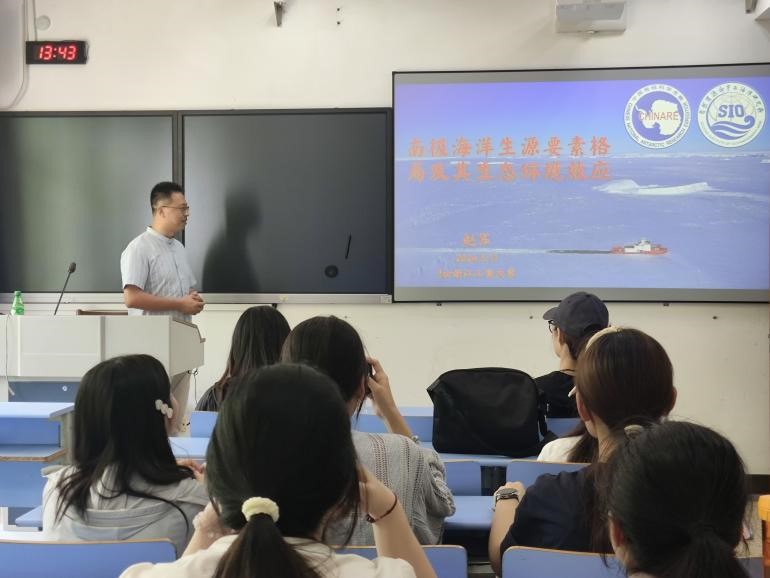 为进一步提高学生的学术修养,5月17日下午,由环境学院何闪英老师邀请自然资源部第二海洋研究所赵军研究员,在C教学楼103教室给学生们上了一节别开生面的课,主题为《南极海洋生源要素格局及其生态环境效应》。