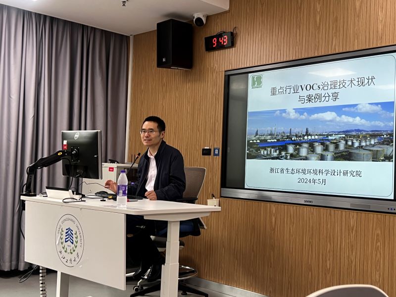 2024年5月12日上午,浙江省生态环境科学设计研究院大气环境研究所顾震宇所长应邀来我院做实务导师讲座,在教学楼A121开展题为“重点行业VOCs治理现状和案例分享”的专题讲座。此次讲座也是新工科创新创业班《环境科学技术前沿》课程内容之一。讲座由环境学院新工科创新创业班负责人殷峻教授主持,班主任唐秀娟老师和创新创业班全体同学参与。