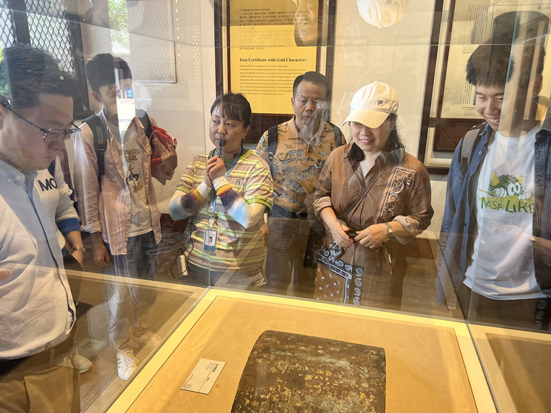 在讲解员的带领下,党员们陆续参观了铜献殿、功臣堂和五王殿,深入了解了钱王的生平事迹、吴越国的历史发展和疏浚西湖、筑捍海塘、纳土归宋等重大历史事件,感受钱氏三世五王的文治武功。