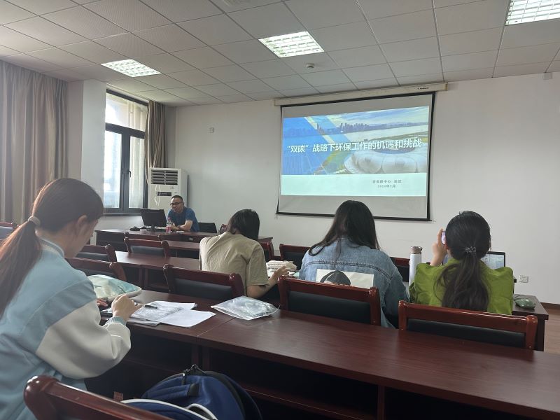 2024年6月1日上午,浙江省生态环境低碳发展中心吴建副主任应邀来我院做实务导师讲座,在逸夫楼428开展题为《“双碳”战略下环保工作的机遇与挑战》的专题讲座。此次讲座也是新工科创新创业班《环境科学技术前沿》课程内容之一。讲座由环境学院新工科创新创业班负责人殷峻教授主持,班主任唐秀娟老师和创新创业班同学参与。
