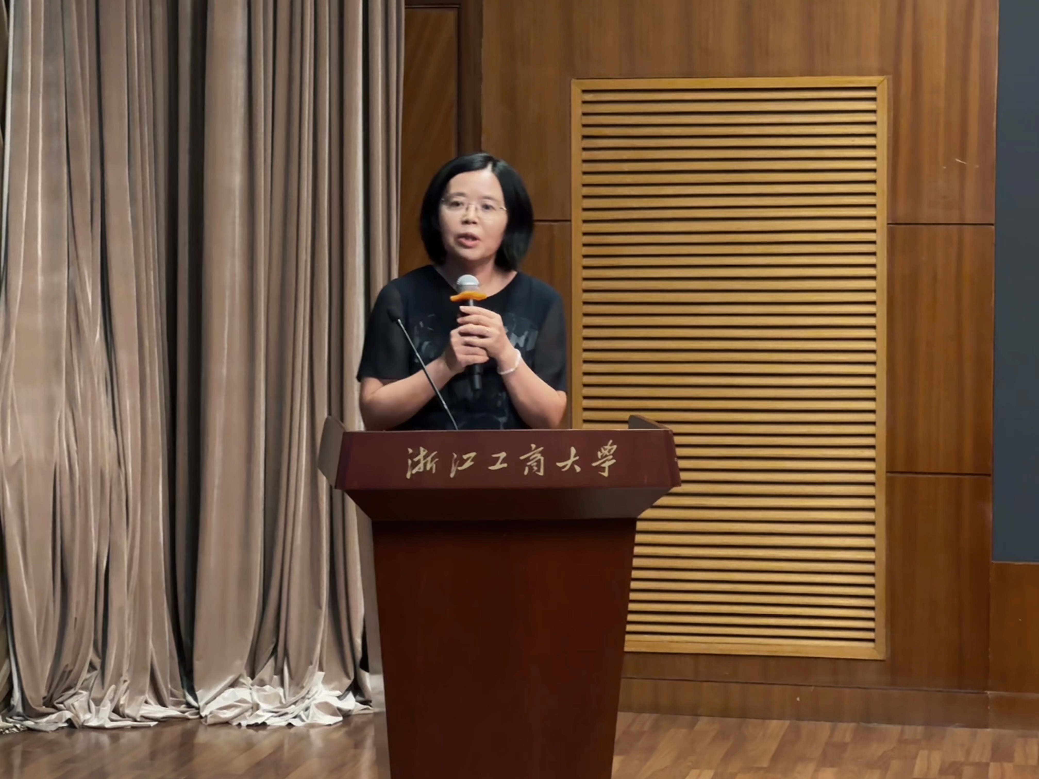 学院院长汪美贞上台致辞,她对新生的到来表示热烈欢迎和诚挚祝贺。她通过学校的金字塔建筑开场,希望同学们走到金字塔中发现宝藏,走到金字塔上面打开自己的视野。她寄语同学们三点期望:一是要持续努力,增强自信。她回顾自己求学的经历,勉励同学们要勤奋学习,参加学生社团及学科竞赛,在一次次的尝试中增强自我信心;二是要保持团结,热爱环境。她回顾了学院学生在科研竞赛中取得的成就以及学院的师资力量,指出同学们要团结作战,学院教师也会助力同学们健康成长;三是要提升格局,拥有家国情怀。她指出大学是衔接工作的关键时期,拥有情怀方能支撑自己一路坚持下去。