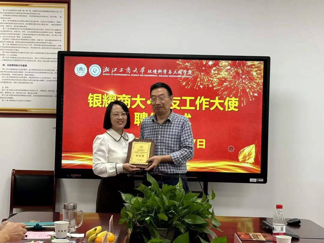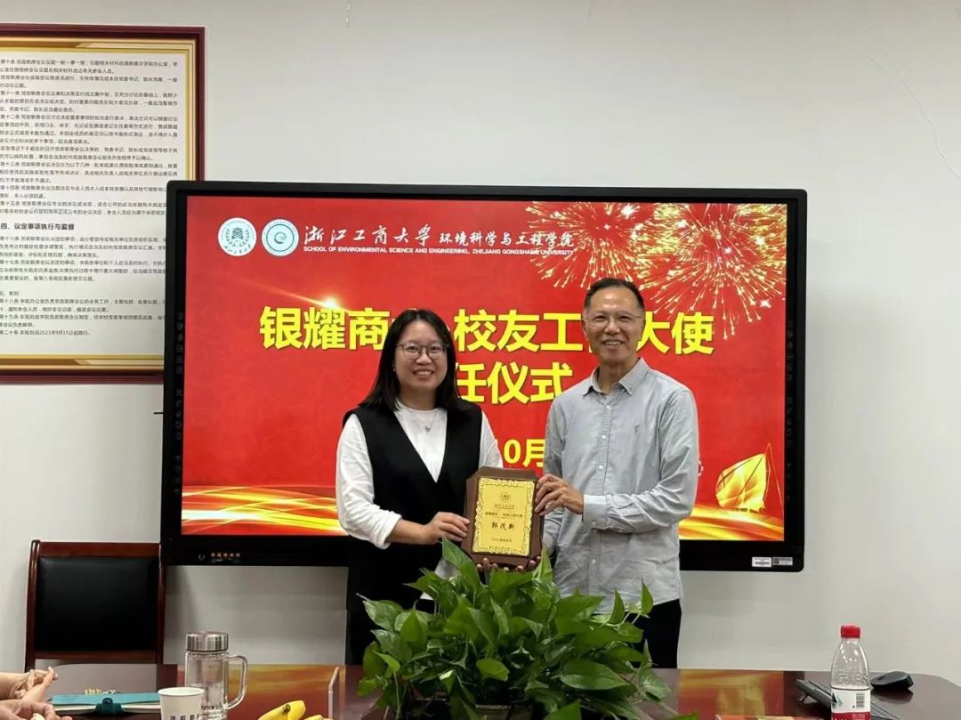 紧接着,学院举行了一场庄重的浙江工商大学校友工作大使聘任仪式。狄瑞波书记对被聘为银耀商大·校友工作大使的孙培德教授、郭茂新教授和颜兵教授表示热烈的祝贺,并高度赞扬了他们长期以来对学院的坚定支持和卓越贡献。随后,汪美贞院长、狄瑞波书记和石周燕副书记分别为老教授们颁发聘书,并与他们合影留念,共同记录下这一荣耀时刻。