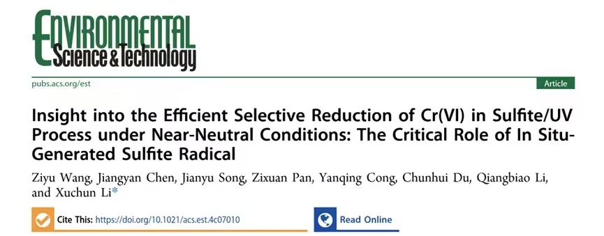 我院吴礼光教授/丛燕青教授团队李旭春副教授课题组于2024年10月在ENVIRONMENTAL SCIENCE & TECHNOLOGY(IF: 11.4)发表题为“ Insight into the Efficient Selective Reduction of Cr(VI) in Sulfite/UV Process under Near-Neutral Conditions: The Critical Role of In Situ-Generated Sulfite Radical”的研究性论文。ENVIRONMENTAL SCIENCE & TECHNOLOGY是自然指数期刊(Nature Index,包括Science、Nature、Cell及子刊在内的总共145种,https://www.nature.com/nature-index),也是我校A+++期刊。